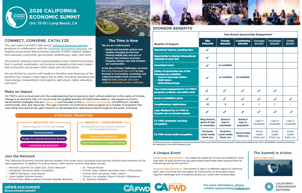 Check out our sponsorship flier to learn how your organization can contribute throughout the year to CA FWD’s work on this vital effort.